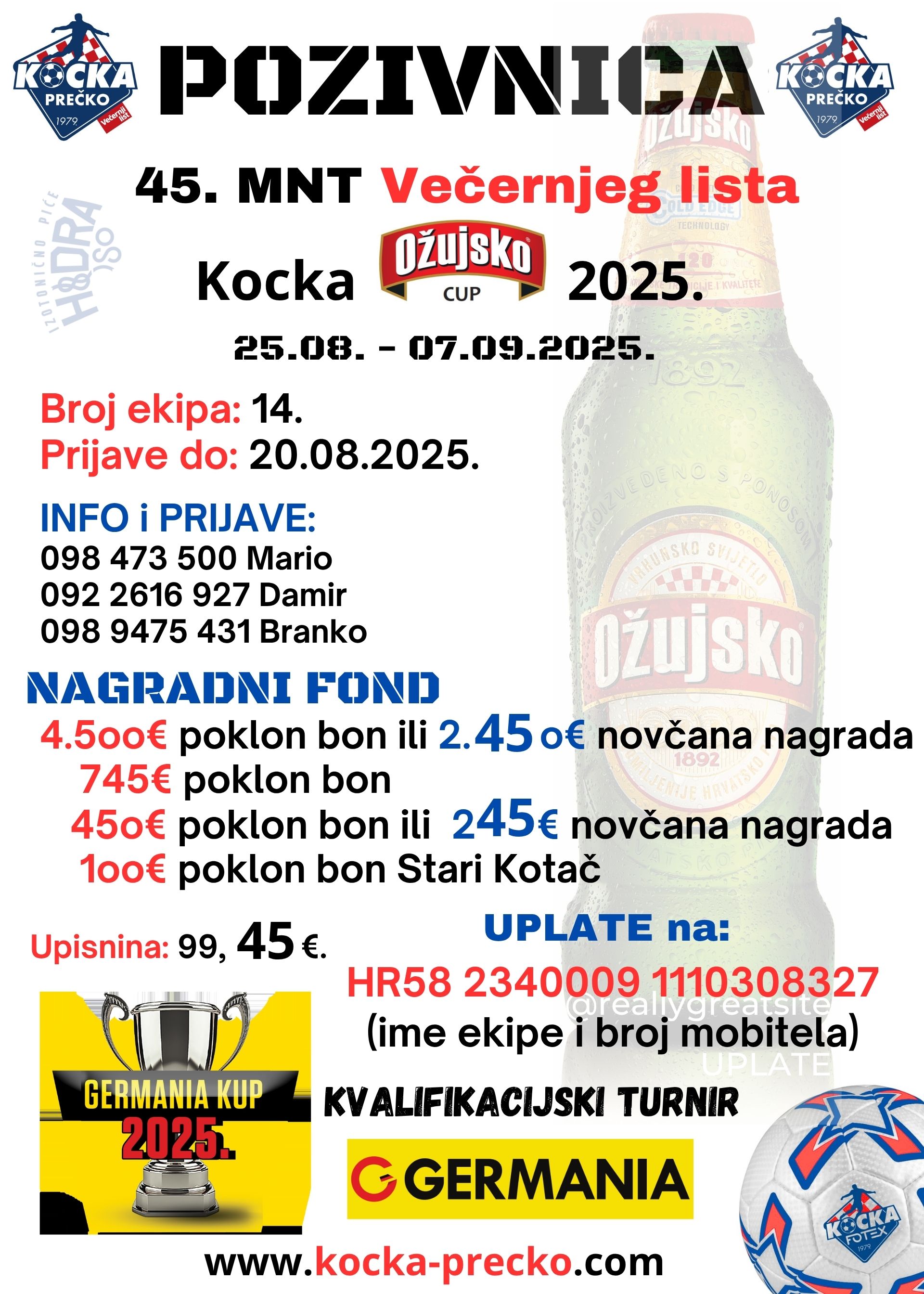 Novitet je što je Kocka, kao kvalifikacijski turnir, ušla u program GERMANIA kupa, te što ćete moći skupljati bodove za veliku završnicu koja će se održati u Zagrebu početkom listopada.